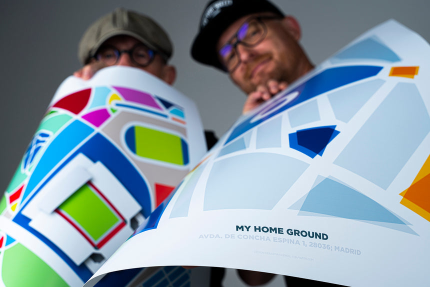Med udgangspunkt i vejene omkring de store fodboldstadions har vi lavet en række farverige plakater til fodboldfans. Skulle din ikke fodboldinteresserede kæreste kommenterer på den, er det selvfølgelig bare et stykke smuk kunst fra et helt FANtastisk område i Danmark, Spanien, Tyskland osv.